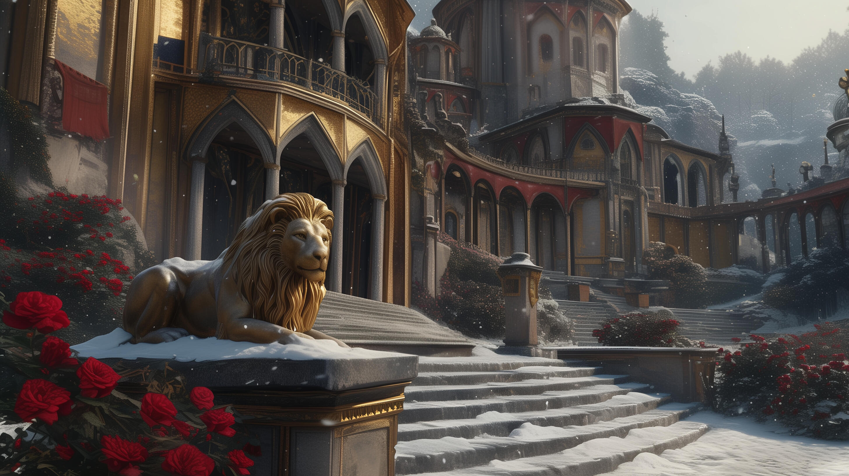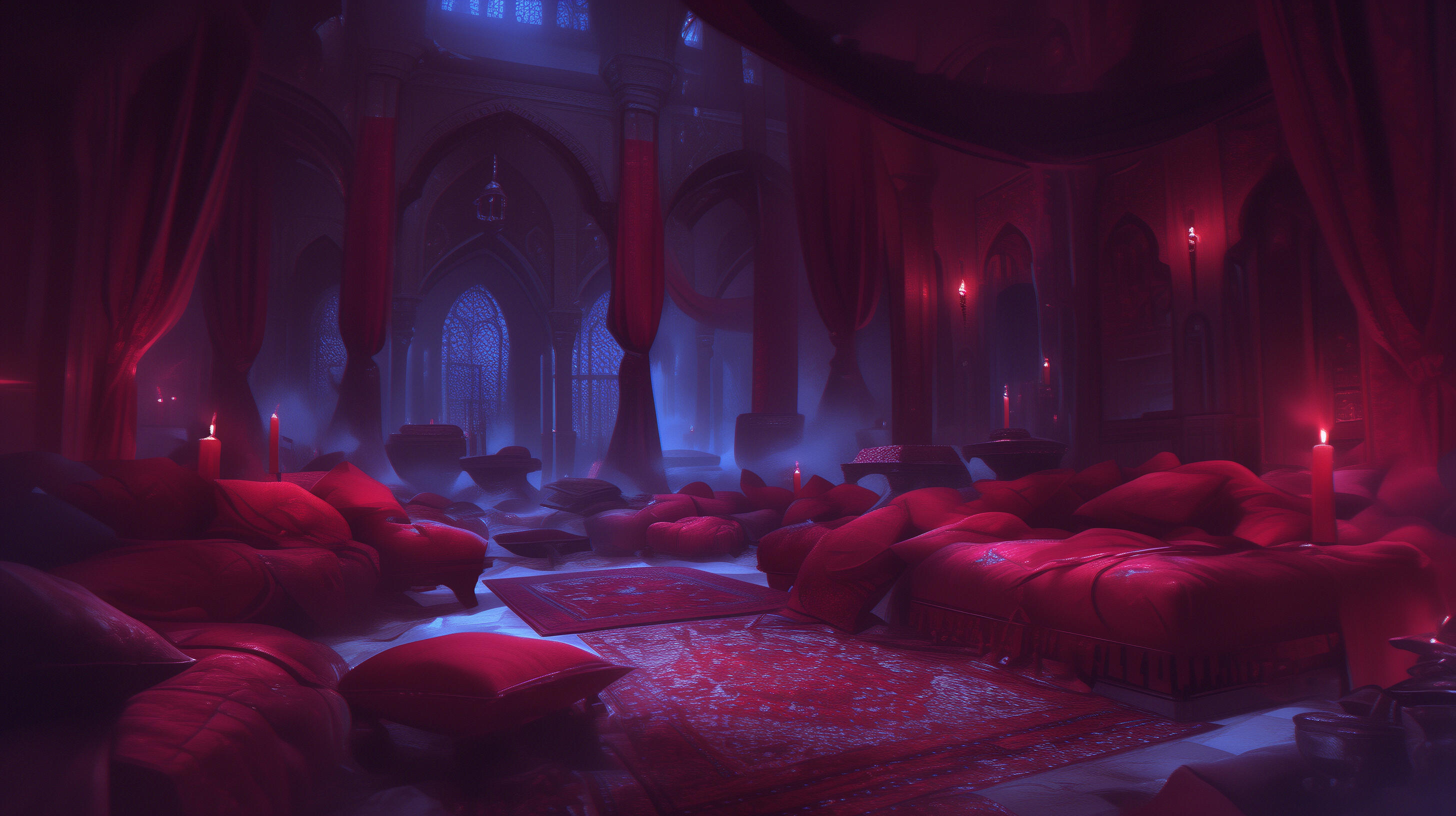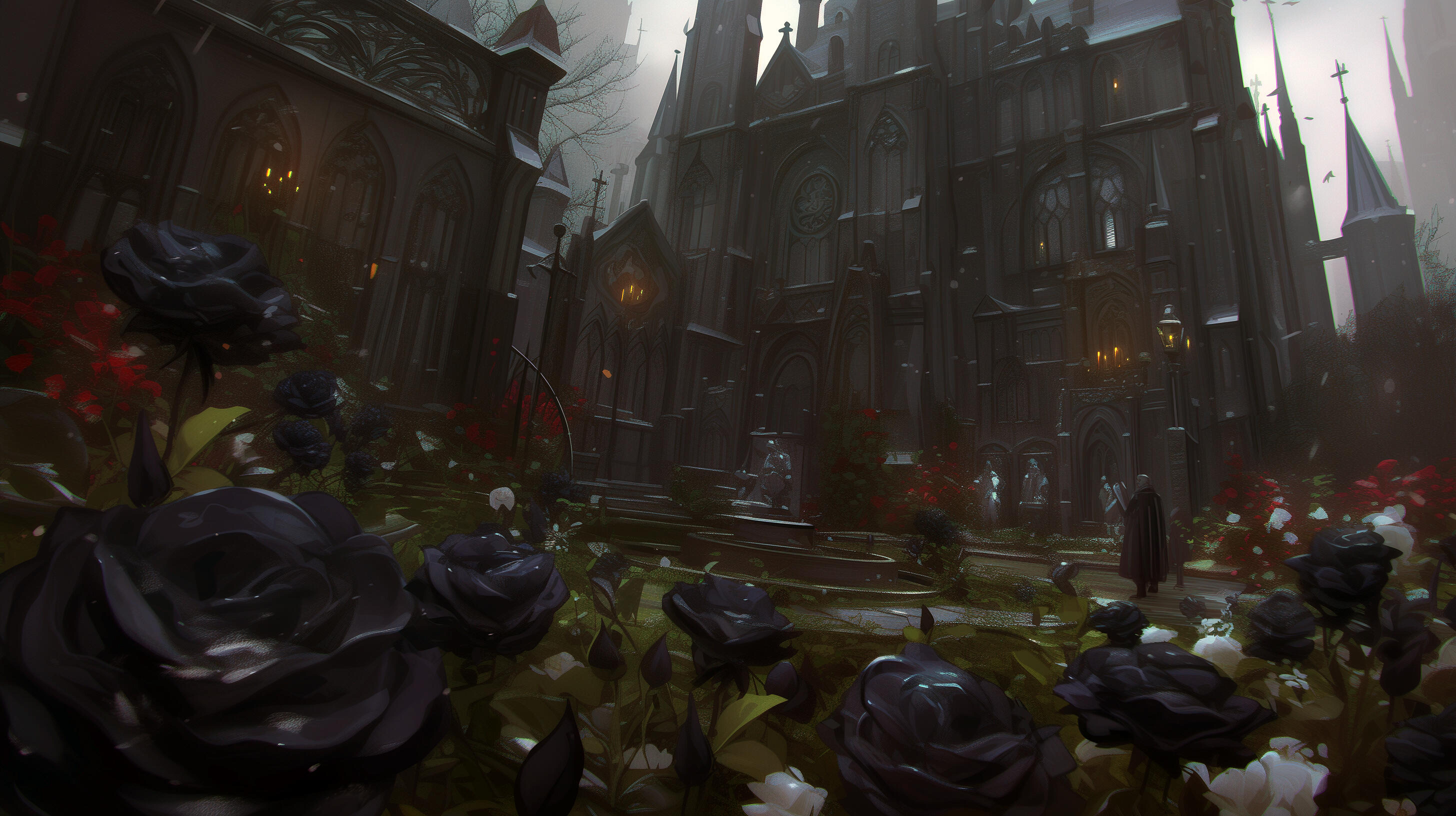 Northern kingdom untouched by the war thanks to its frigid and unforgiving land where the sun never rises. Ruled by the ancient vampire family of Noirdene. Inhabited by creatures of the night and those inclined to the cold. Filled with hauntingly beautiful gothic structures.Its sigil represented by a black rose enclosed in a ring of blood red thorns. Banners are in black, deep reds, and purples.Noirdene is only reachable through a specialized ship that can travel through the harsh frigid waters.