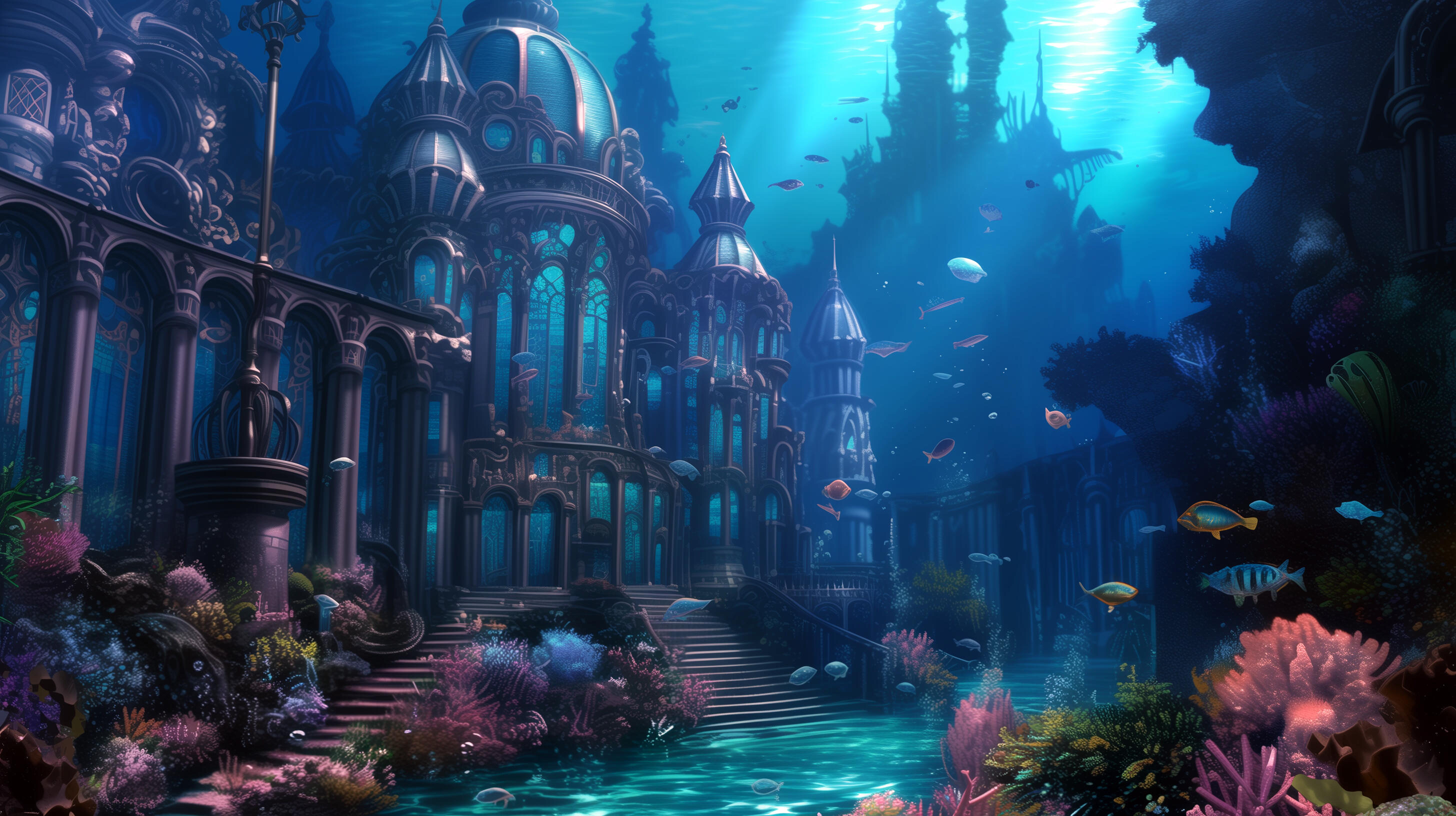 Geography & Climate: Coastal water kingdom with vast oceans, pristine beaches, and lush coastal forests. Temperate to tropical climate. Underwater cities and surface settlements coexist. Rivers and waterfalls throughout. The landscape seems almost magically perfect.